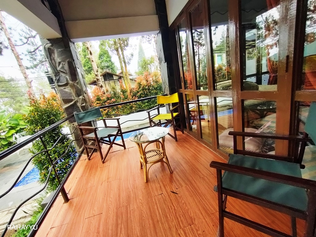 Balkon / area santai dengan view pegunungan